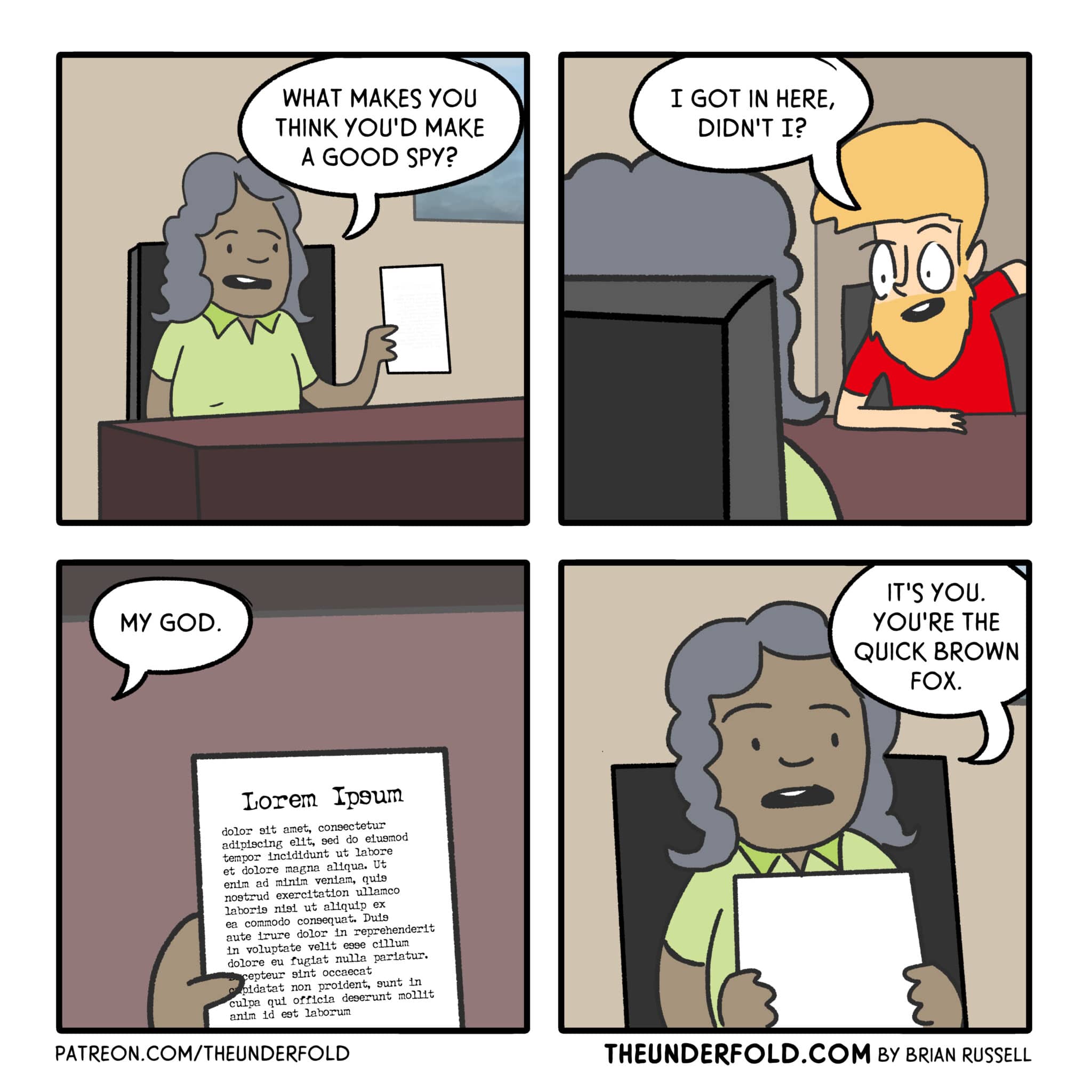 Categories All New Underfold Spy Interview Post author By Brian Russell Post date May 21, 2020 No Comments on Spy Interview The quick brown fox jumps over the lazy dog. Tags bonus comic ← Impostor Syndrome → Honey-Do List Leave a Reply Cancel replyYour email address will not be published. Required fields are marked *Comment * Name * Email * Website Δ This site uses Akismet to reduce spam. Learn how your comment data is processed.