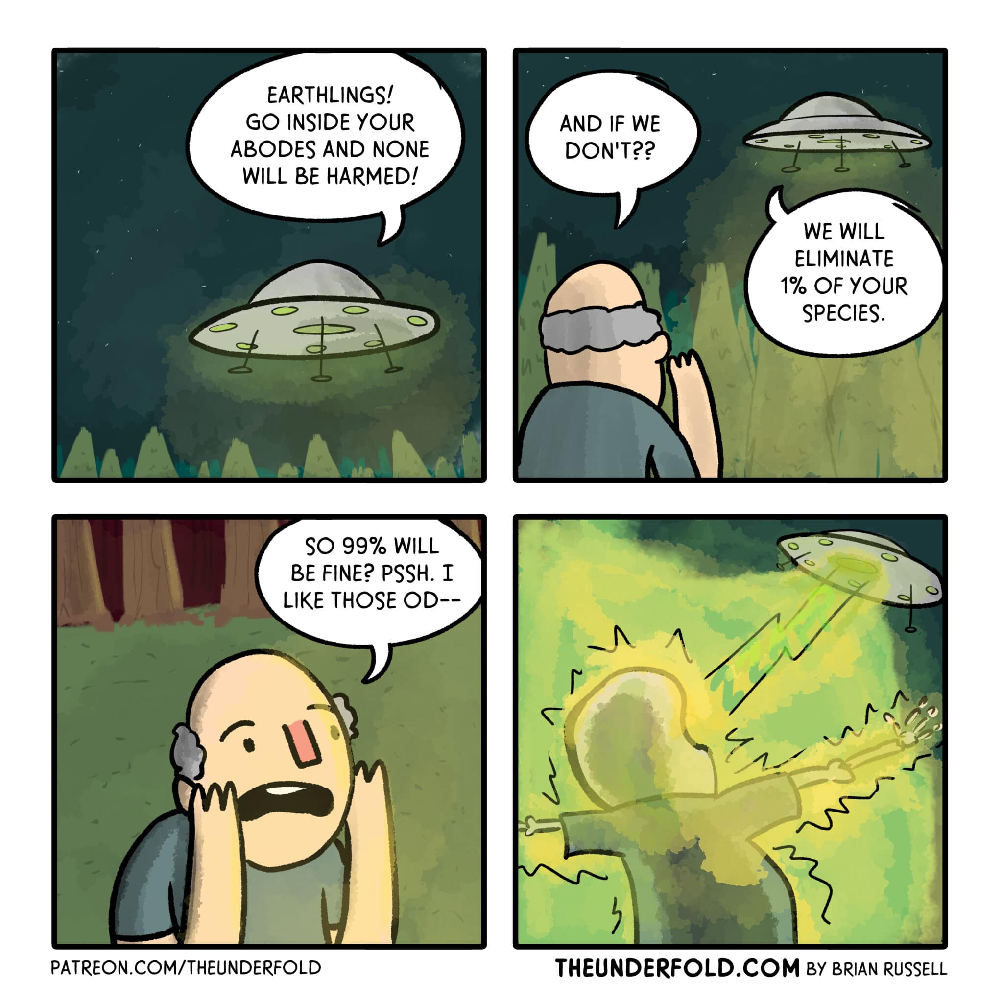 Here’s a random comic I came up with out of nowhere. I just like the idea of aliens, I guess. Definitely no bearing on current events related to COVID19. I wouldn’t even know where to start for that.