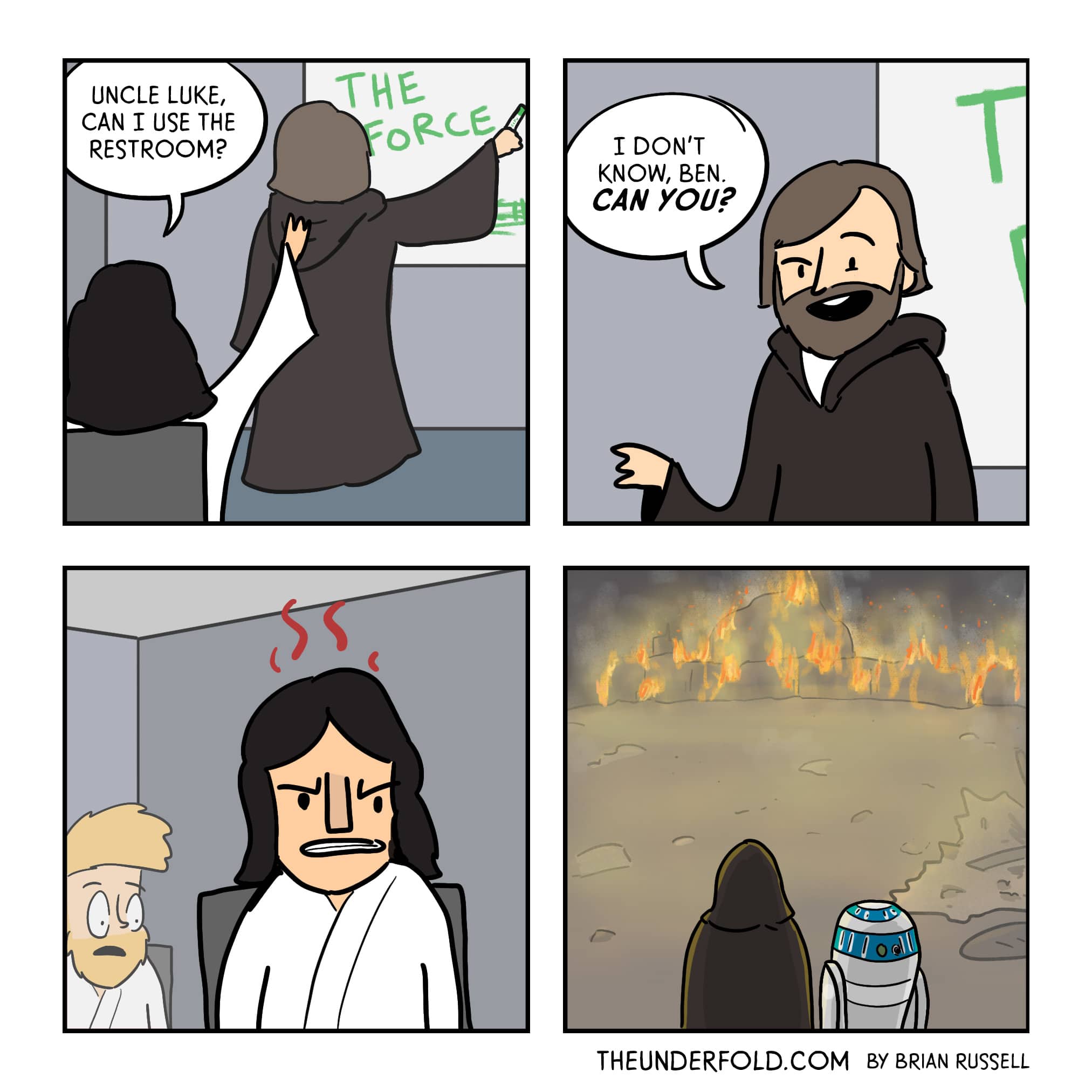 In 2016, before The Last Jedi and fresh off of The Force Awakens, I was just getting back into comics. I had been avoiding color comics for a while, but one day, I had an idea and just went for it. That’s when I made this…I still think it’s funny to this day, but I’ve refined some of my drawing skillz and processes. So when they announced the new comic mini-series, The Rise of Kylo Ren, I knew I needed to remaster this old comic. I rebuilt it from the ground up.